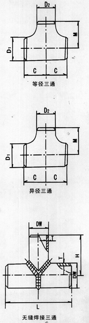 | 1.仅列出等径三通尺寸,异径三通在表列公称通径范围均能生产 |
